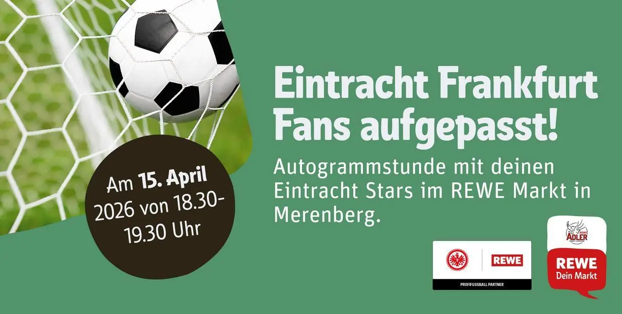 Die nächste Möglichkeit, echte Fußballstars hautnah zu erleben, steht schon in den Startlöchern – am 15. April!Du bist großer Eintracht Frankfurt‑Fan oder einfach nur Autogrammjägerin oder Autogrammjäger? Dann ab zu REWE! Dort hast du die Chance, zwei aktuelle Eintracht Frankfurt Spieler ganz persön